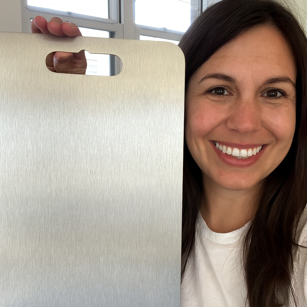 Cuttivo Ultra is a high-end cutting board made from 100% titanium. Its surface is non-porous and free of microplastics, so it doesn't absorb smells, stains, or mold.
